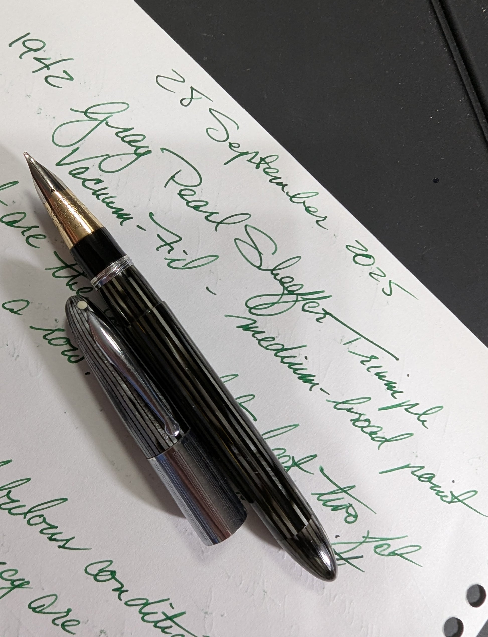 In my experience first generation Sheaffer Triumph nibs almost always have extra-fine or fine points. I have restored dozens and dozens of these pens and have seen few with broad nibs. This nib is unusual and it is delicious.
