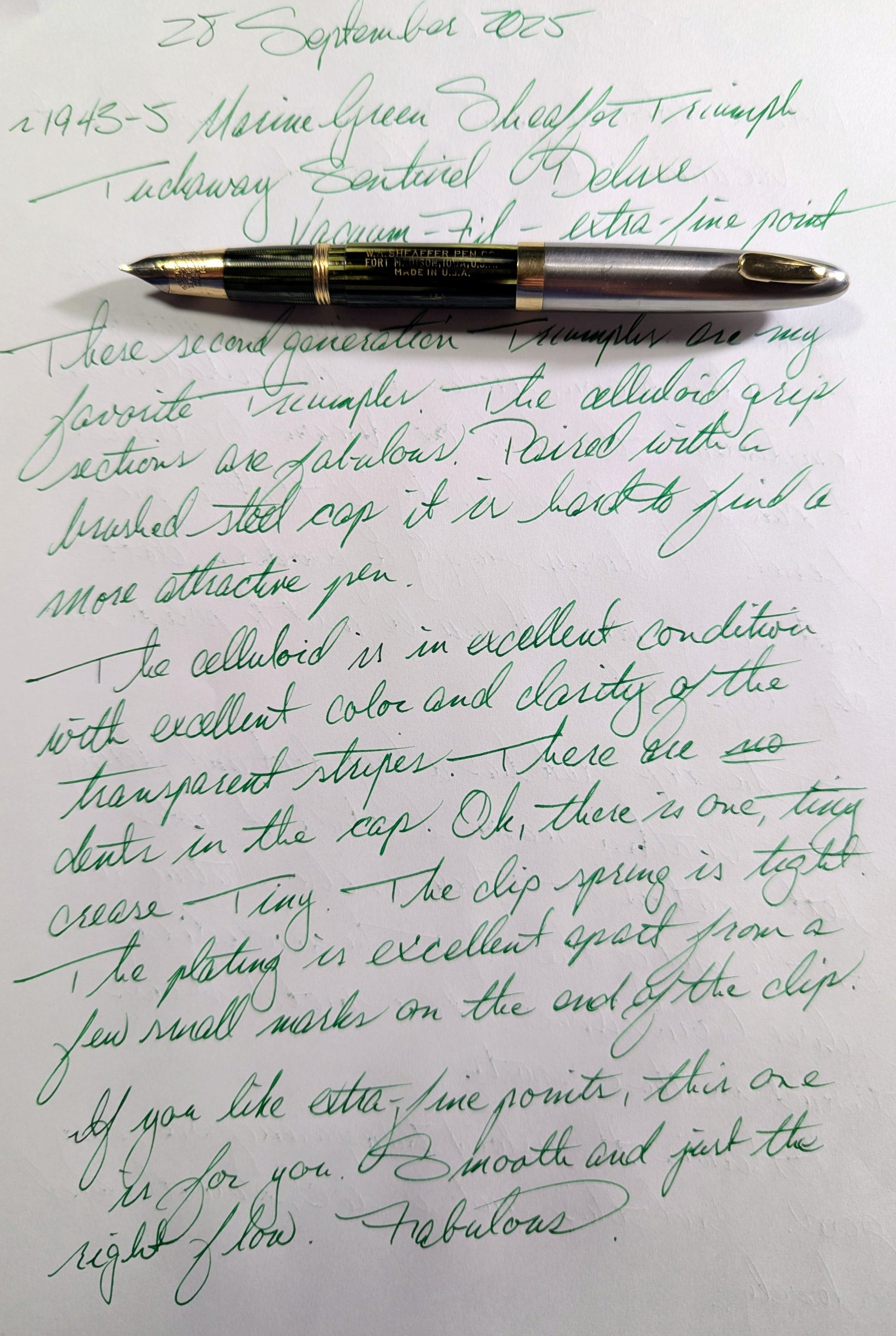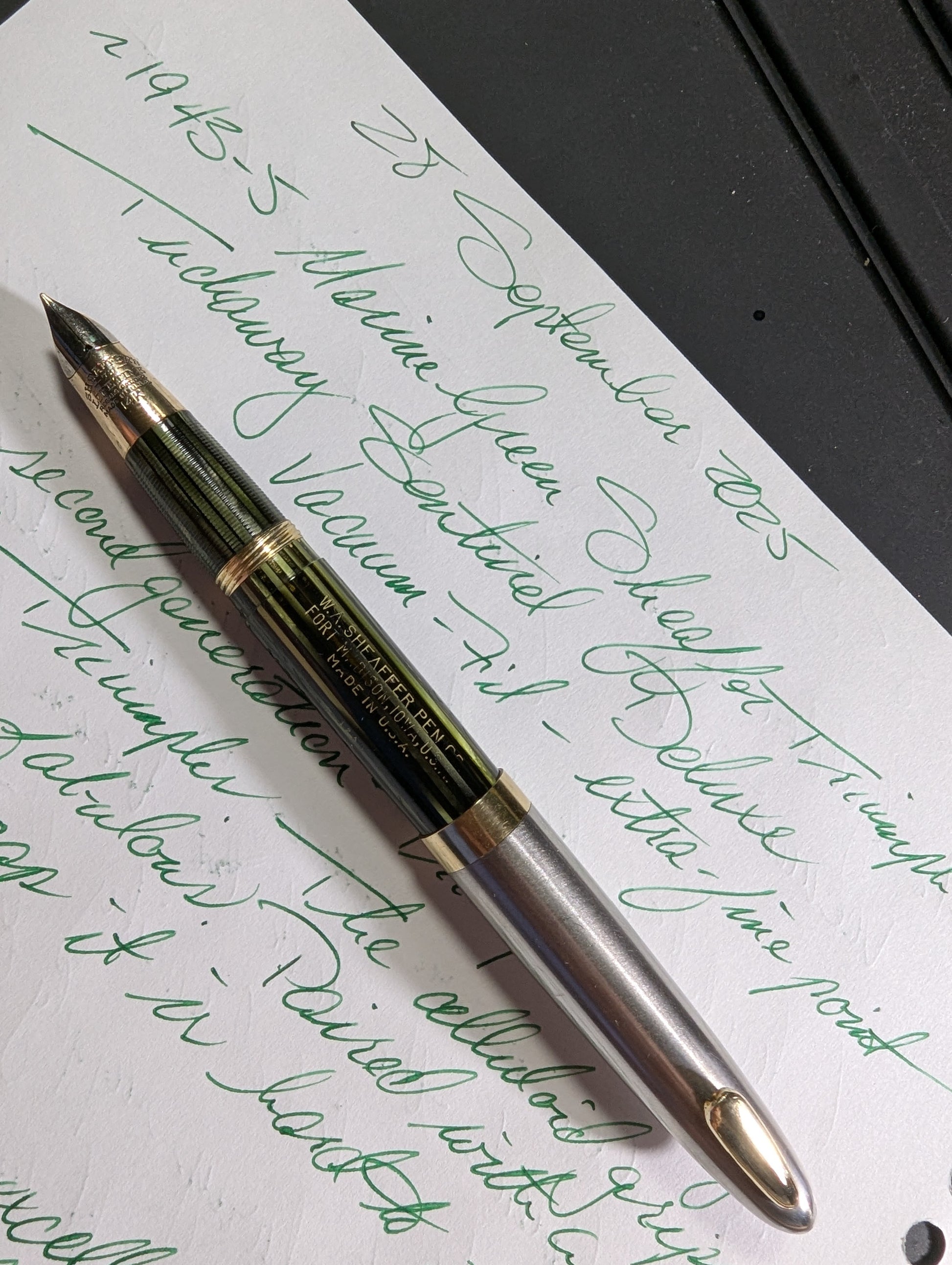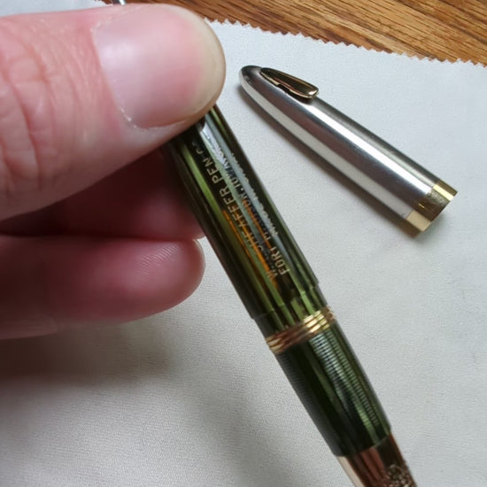 1943-5 Marine Green Sheaffer Triumph Tuckaway Sentinel fountain pen - extra-fine point
