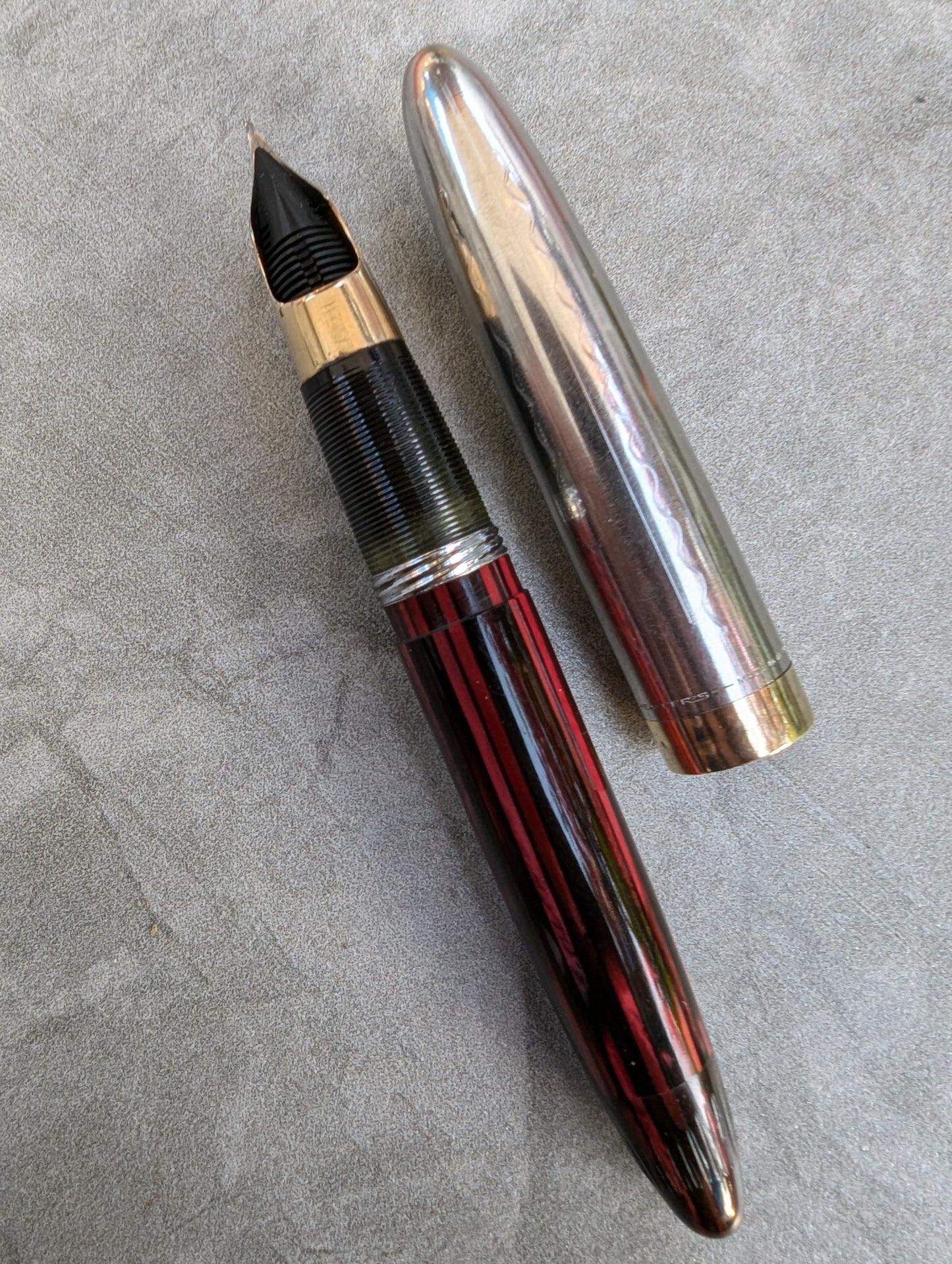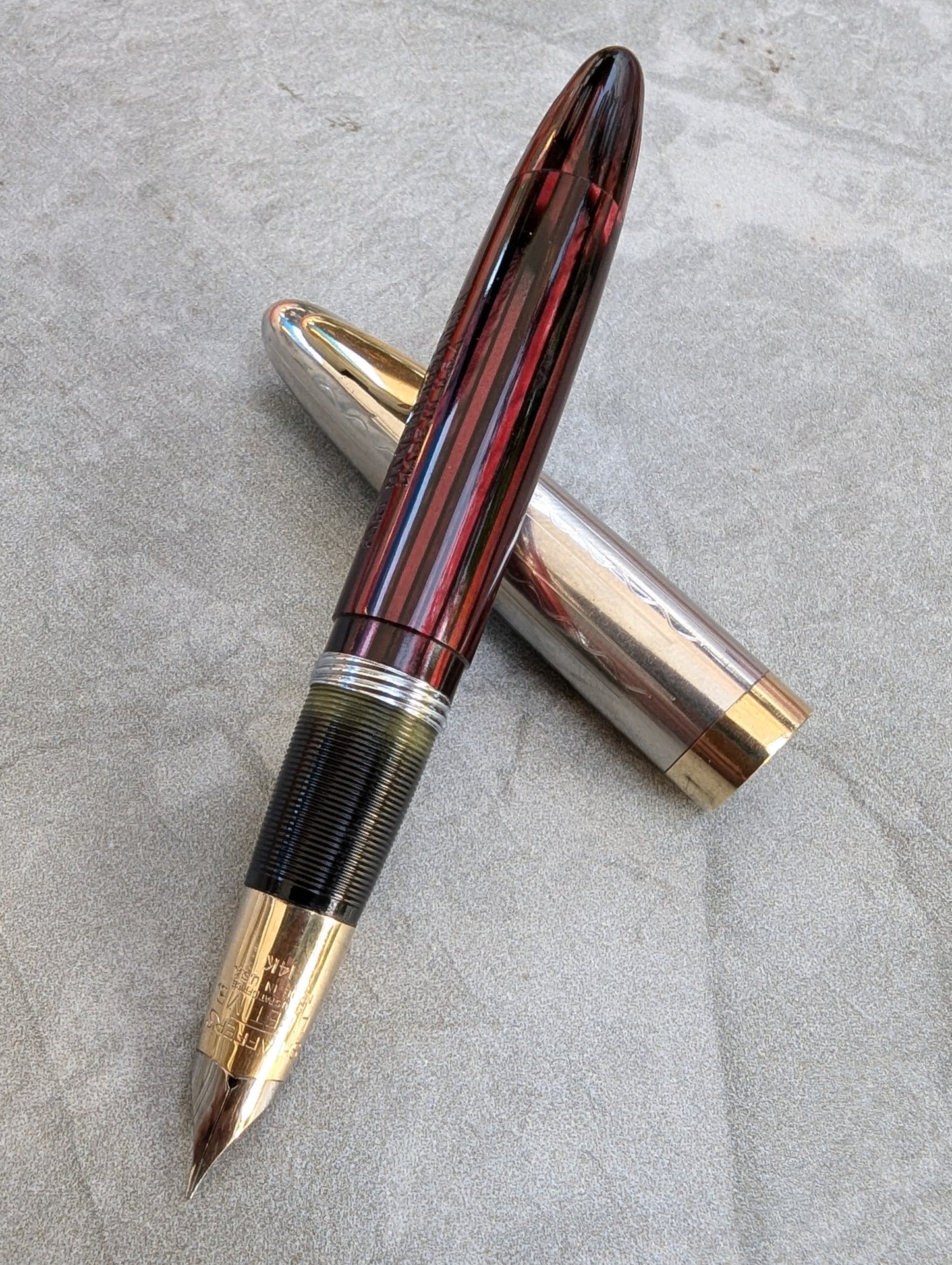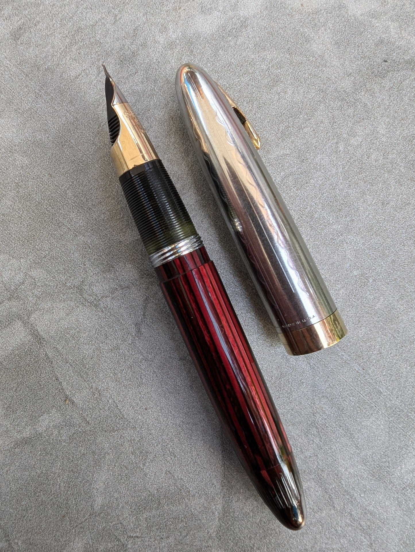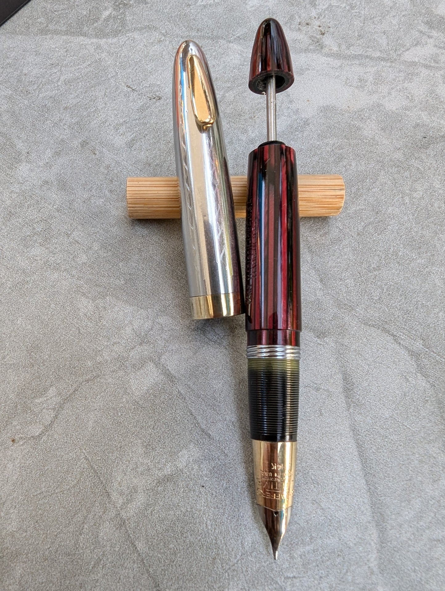 Pluma estilográfica Carmine Sheaffer Tuckaway Sovereign, año 1947, punta fina