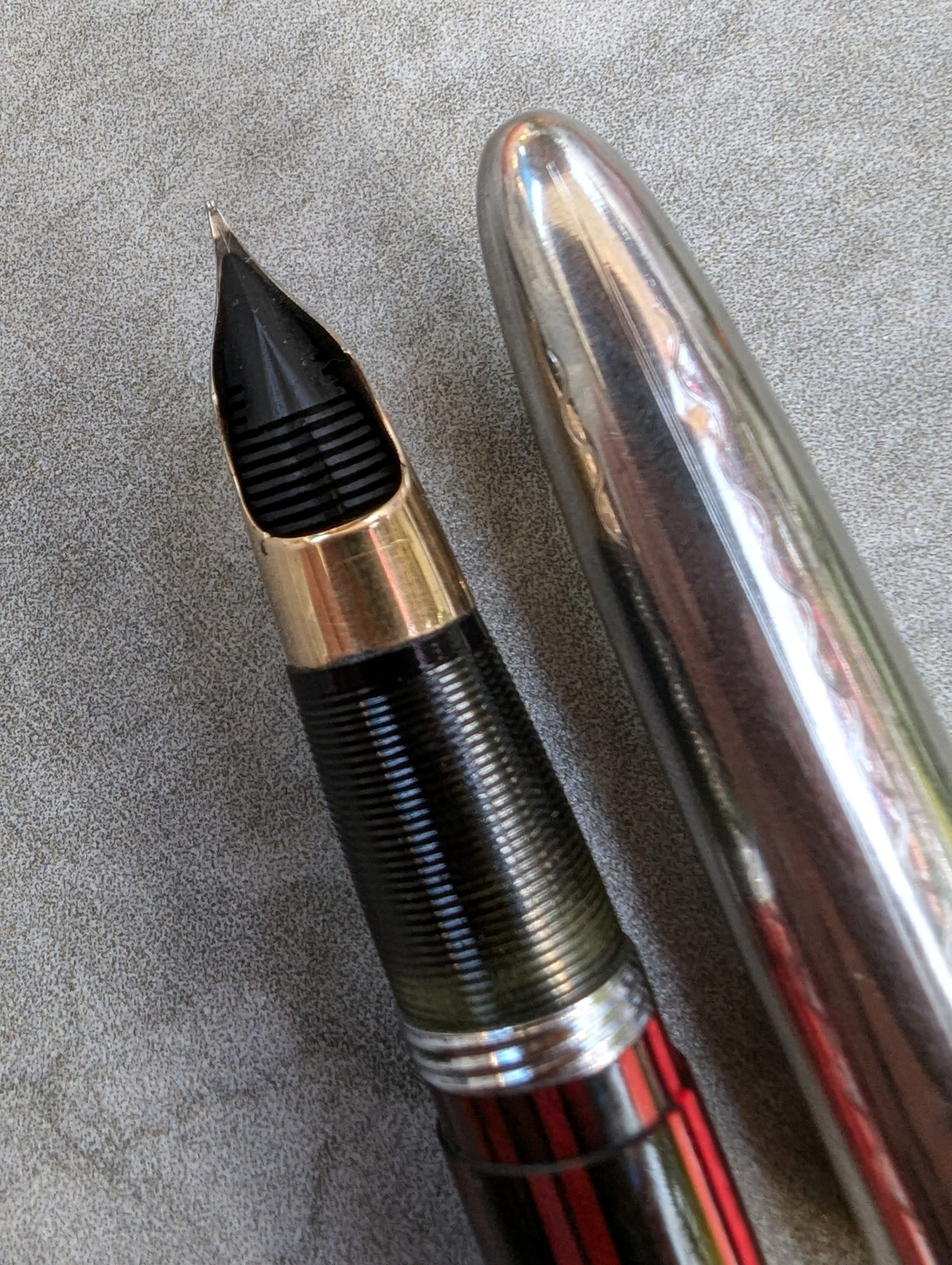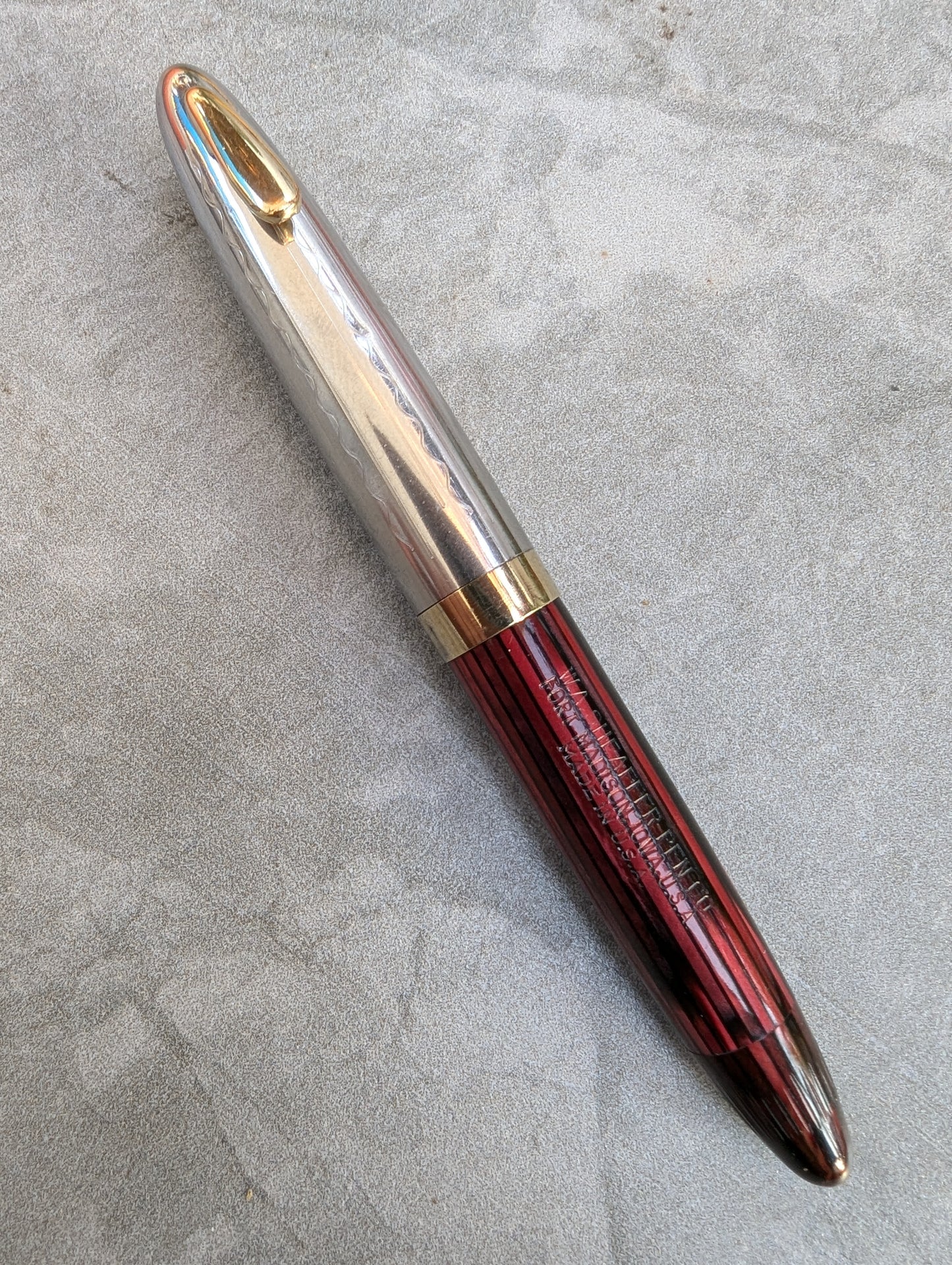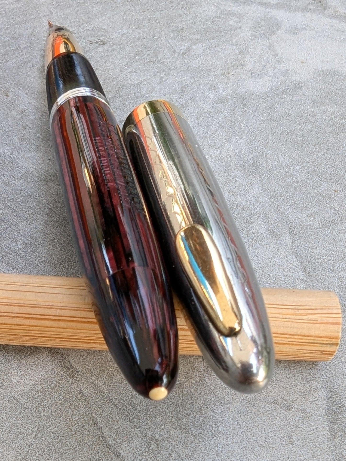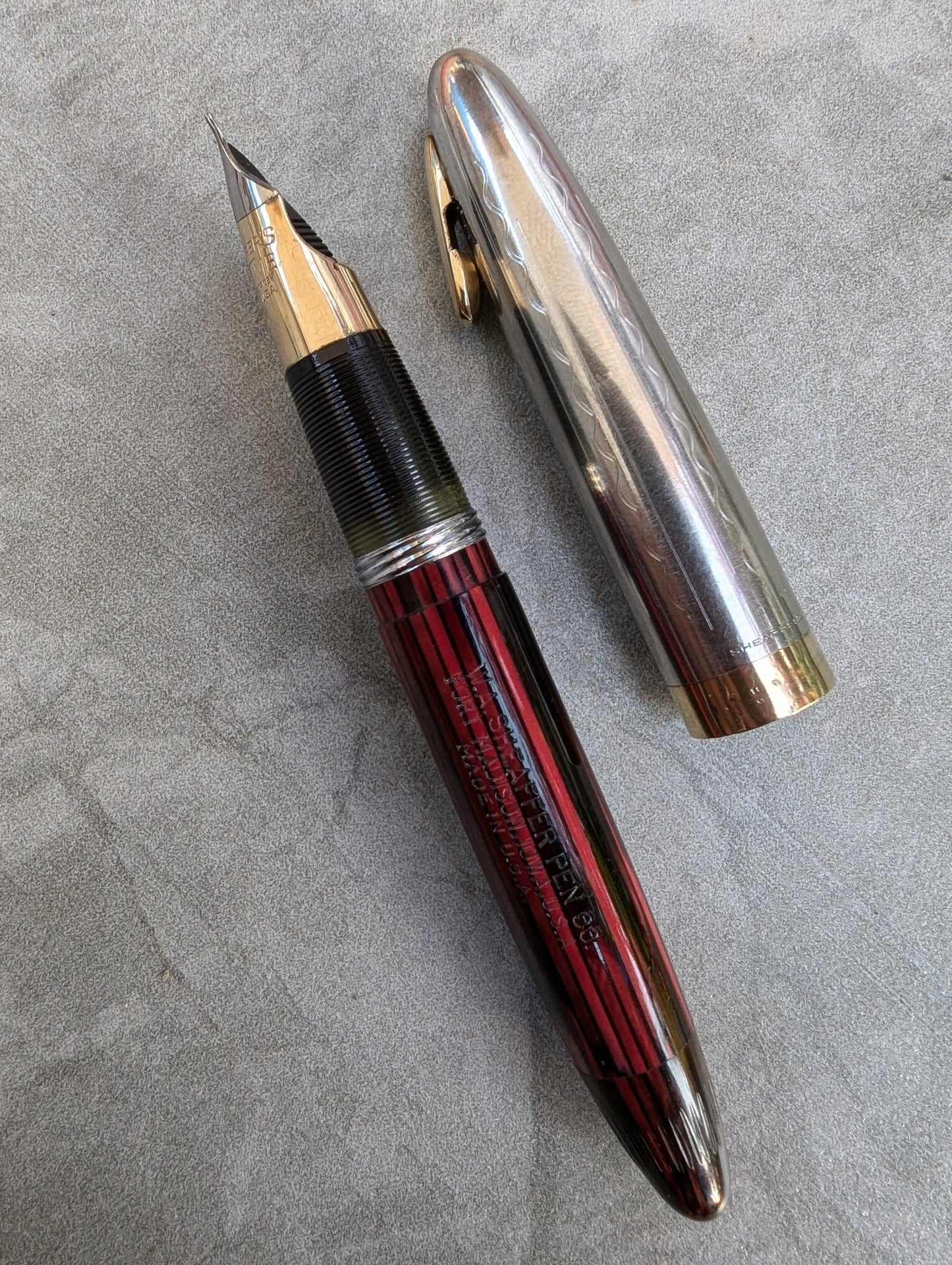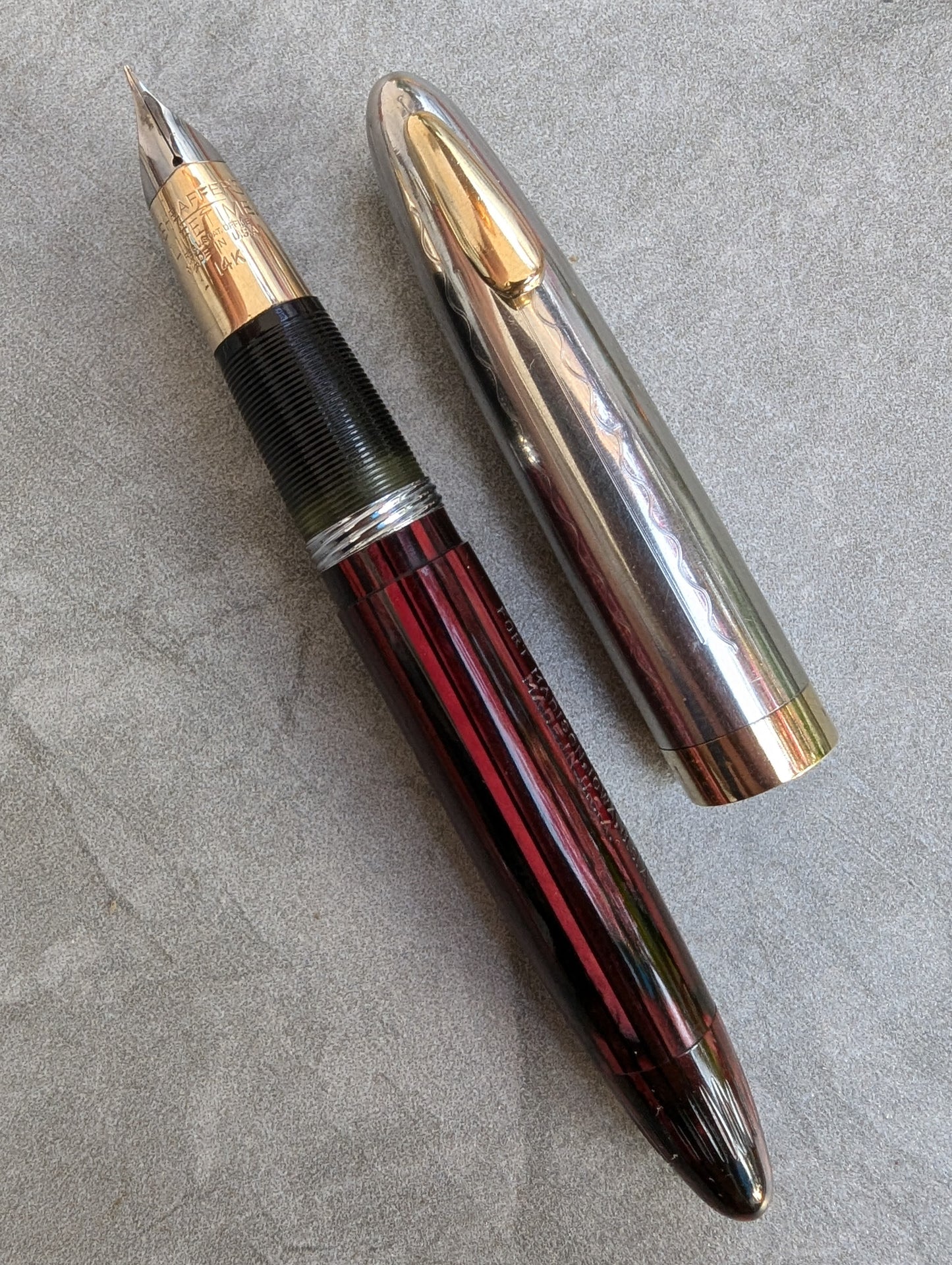 Pluma estilográfica Carmine Sheaffer Tuckaway Sovereign, año 1947, punta fina