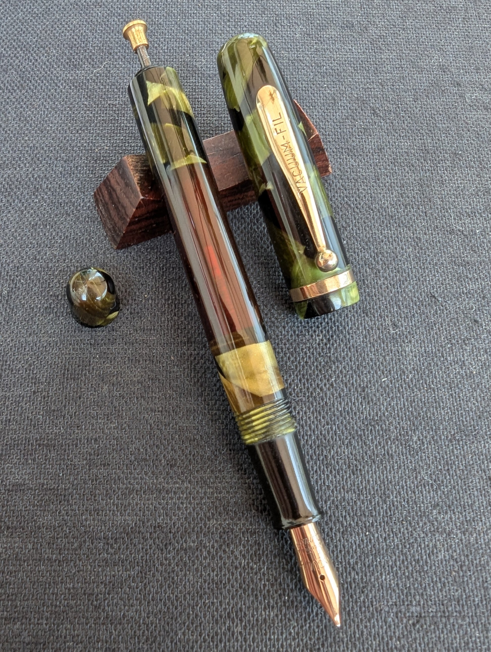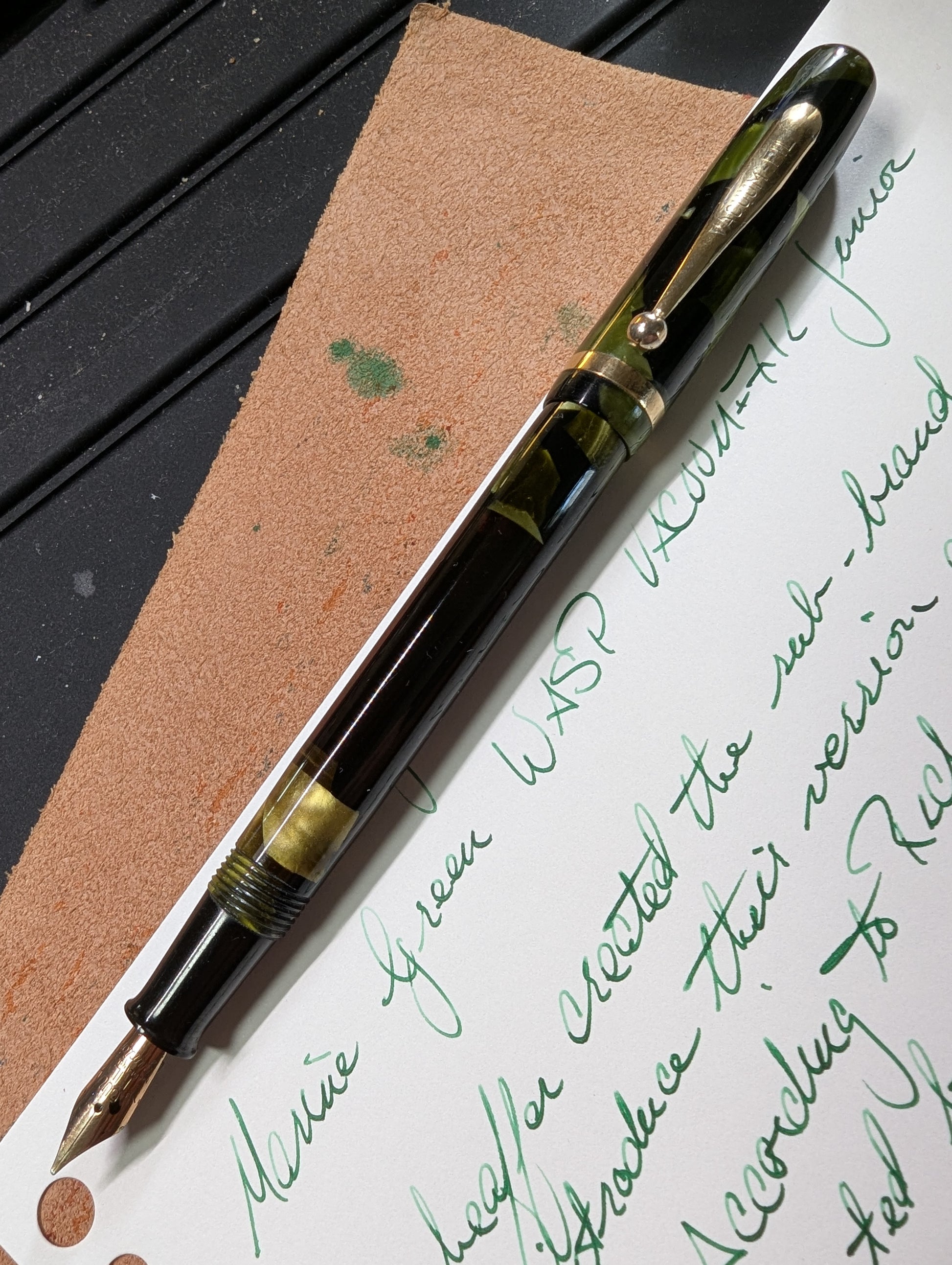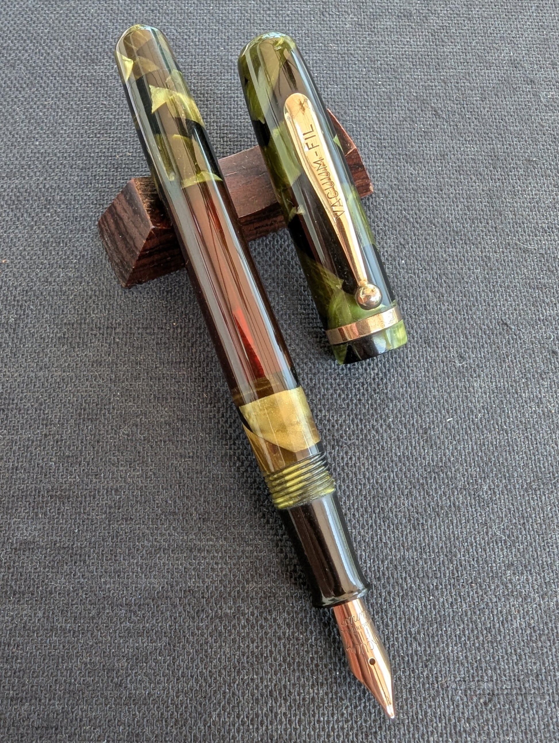 This pen is likely a later ~1936 production when the sub-brand VACUUM-FIL was renamed WASP - Walter A. Sheaffer Pen company. Earlier pens would have been marked only VACUUM-FIL while this barrel imprint is WASP, VACUUM-FIL.