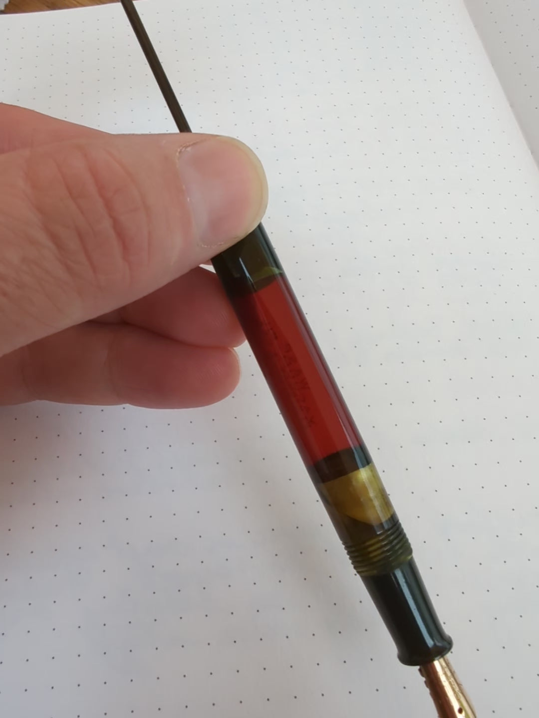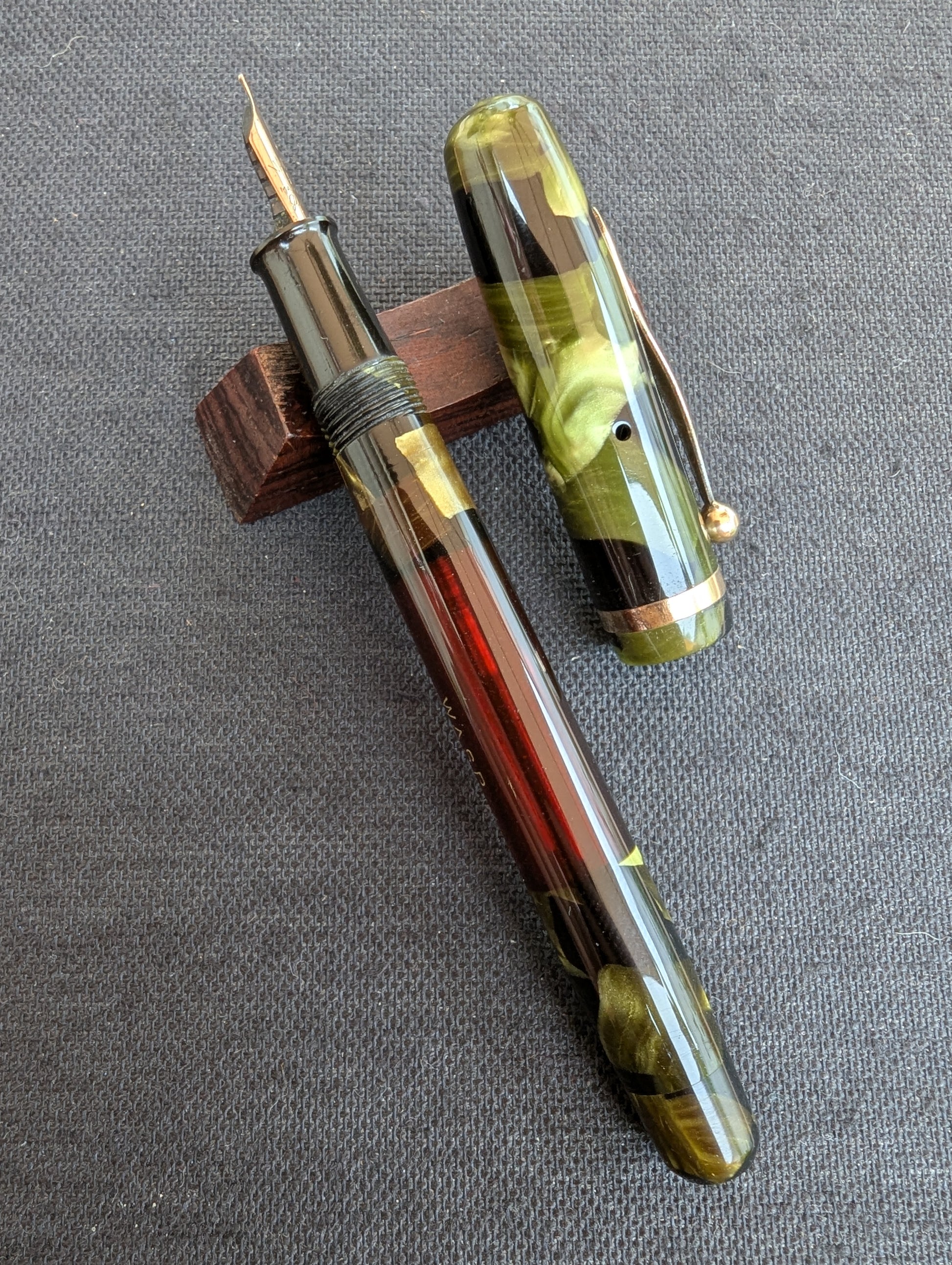 The only flaws in this little gem are a darkened ink-view barrel and some pitting of the plating on the cap band.