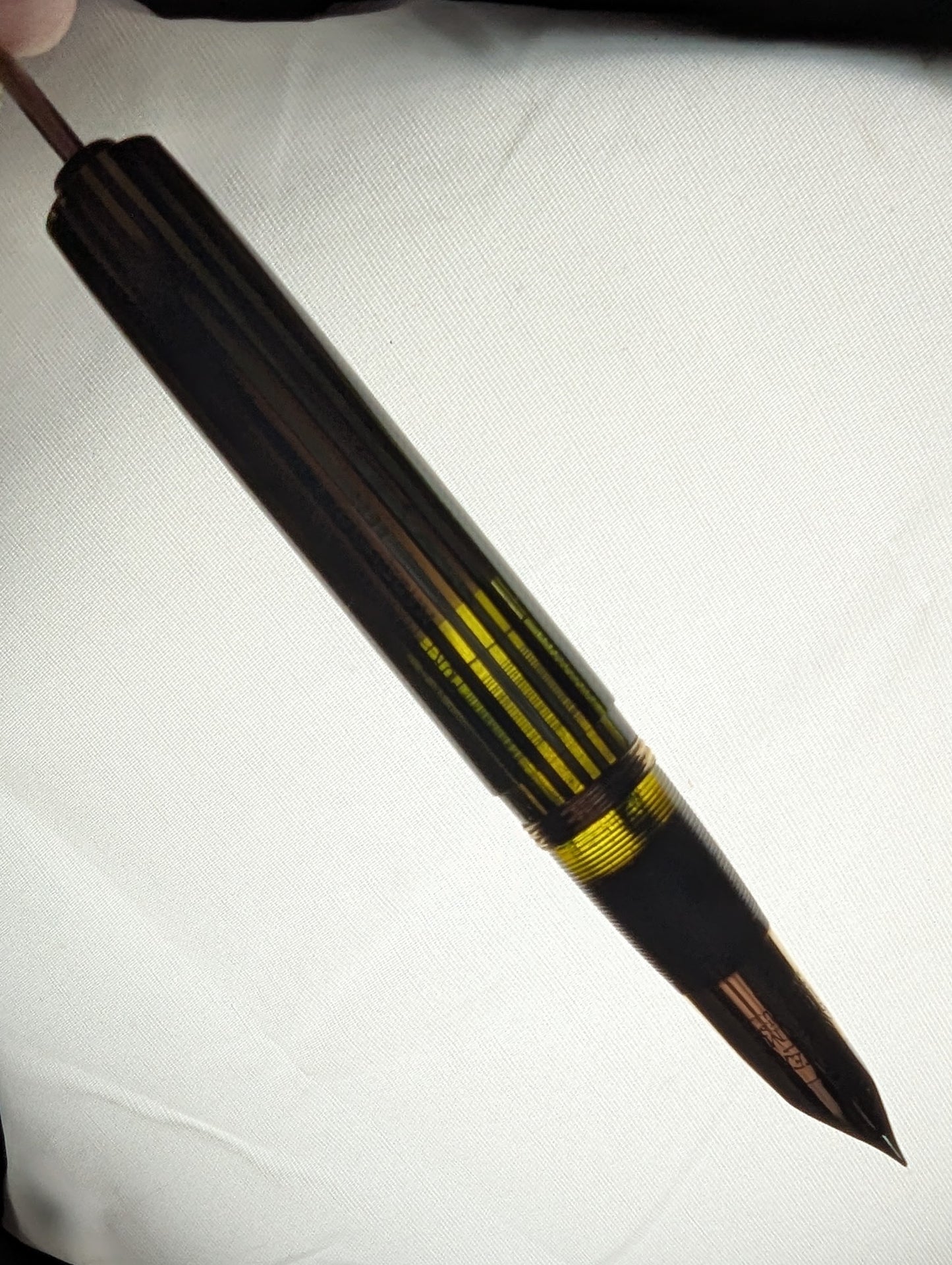 The nib writes a smooth and wet line. The cap may be posted gently without fear of marring the celluloid. This makes the pen comfortable in almost any hand.
