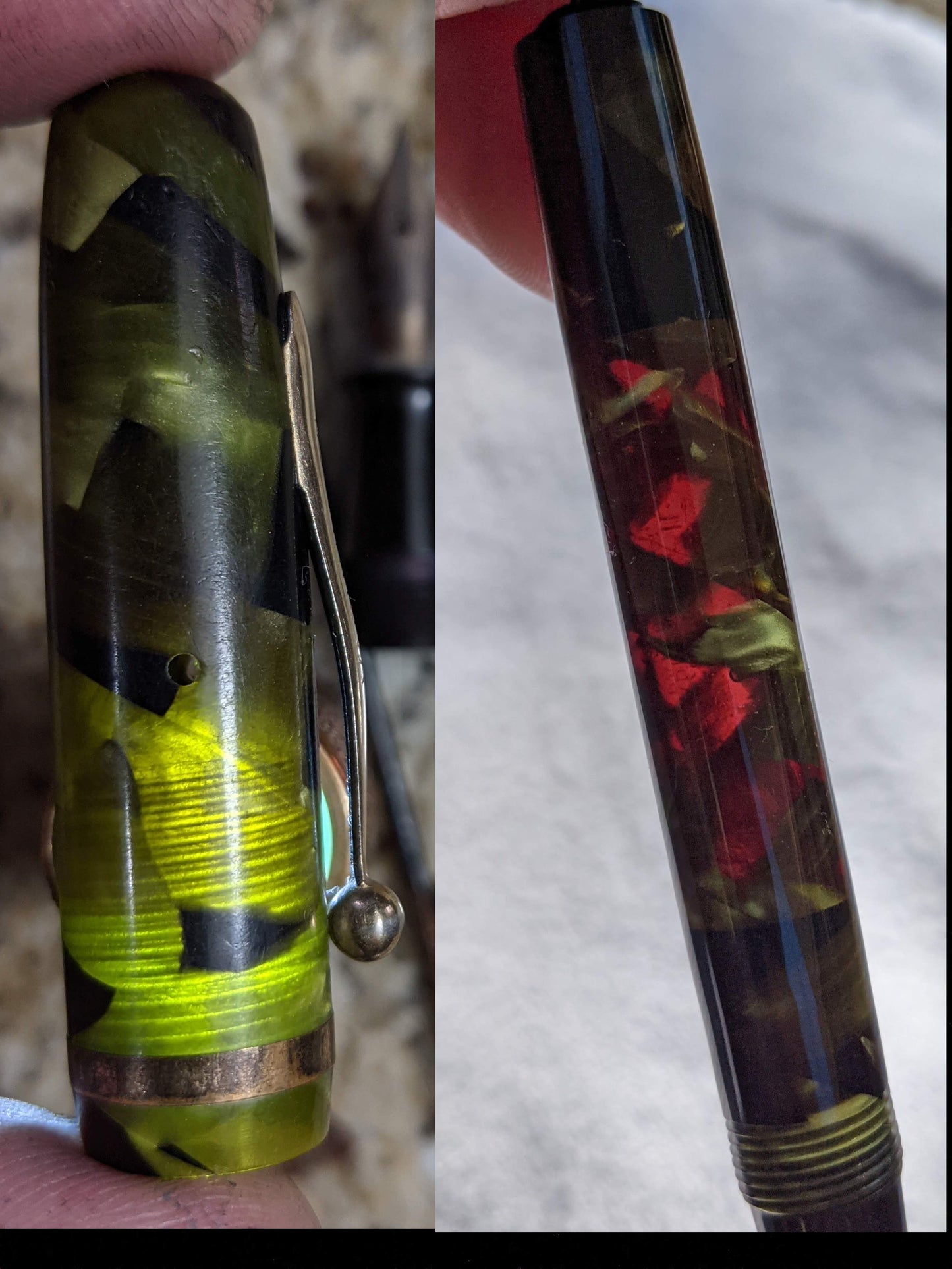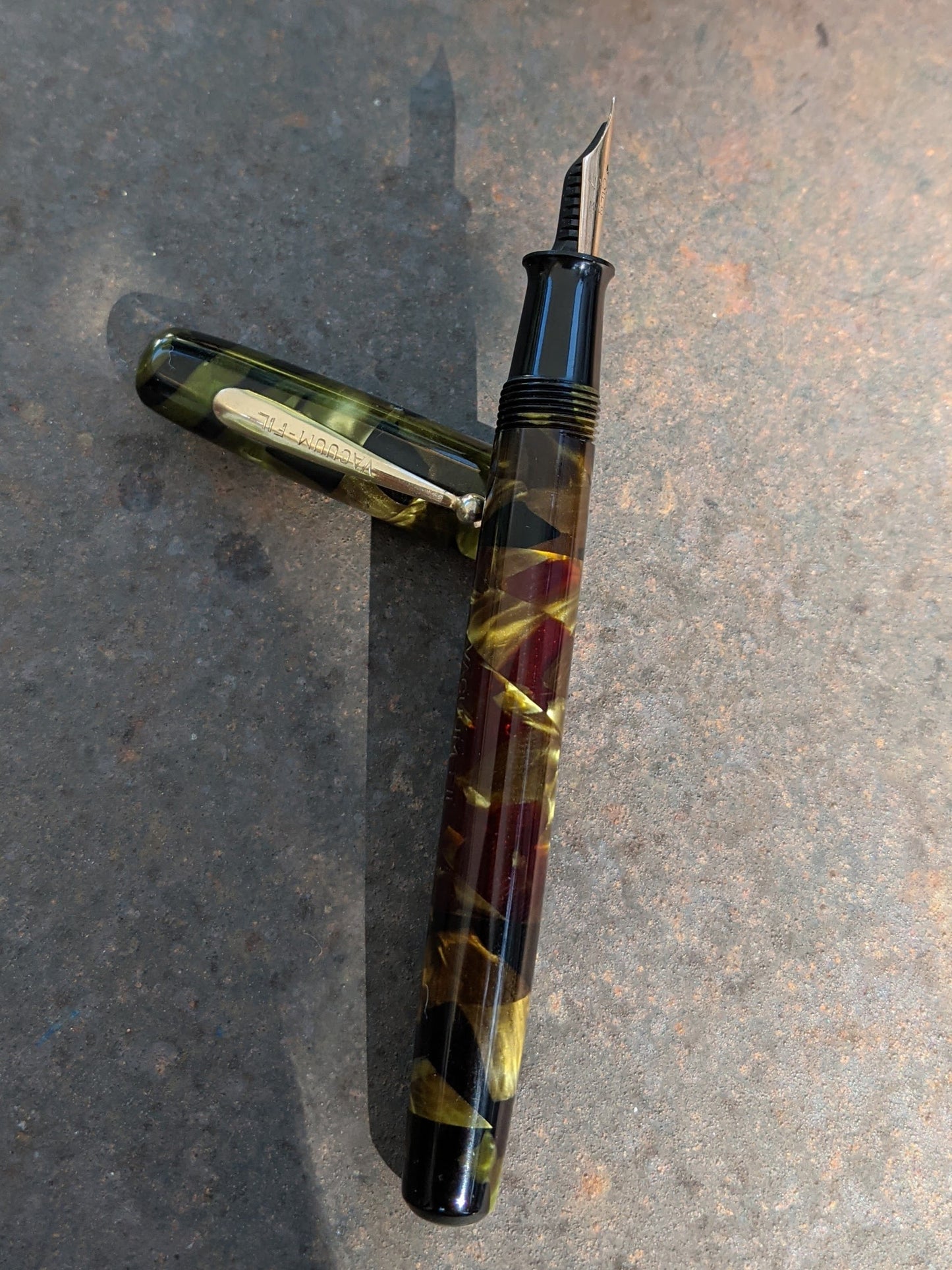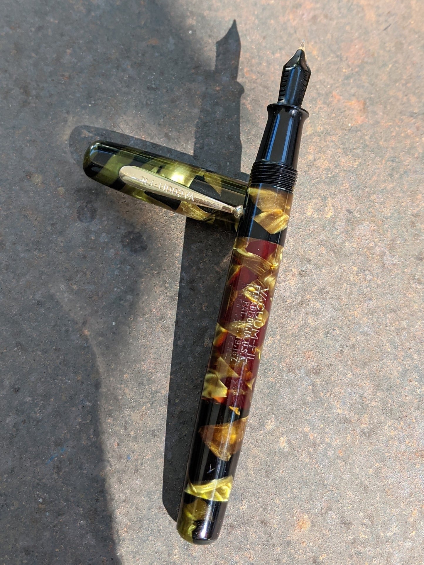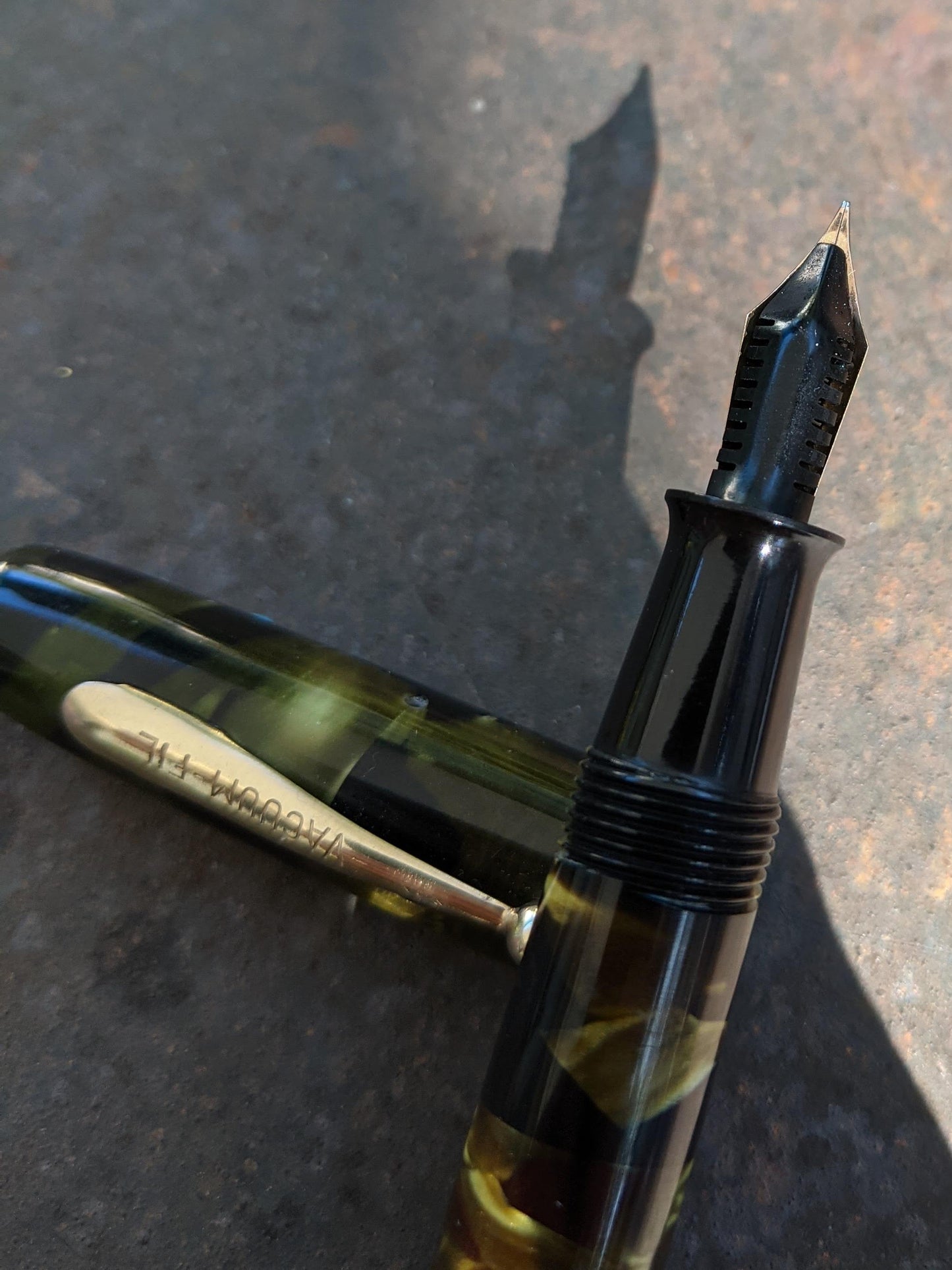 Sheaffer Balance pens were available in marine green celluloid from 1930 to 1935. However, they were only lever fillers. Marine green vacuum-filling pens were available only from VACUUM-FIL.