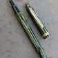 The condition of the pen is truly remarkable. It is not quite mint since there is a hint of thinning to the plating at the clip ball and the edges of the cap band. Otherwise, the pen is in perfect condition. The color and clarity of the barrel is perfect. There is no staining, no darkening and no cloudiness. The surface of the celluloid is likewise as perfect as could be wished. The lack of price code beneath the manufacturer's imprint indicates this is probably a pen from 1937, the first year striped Marine Green was available.