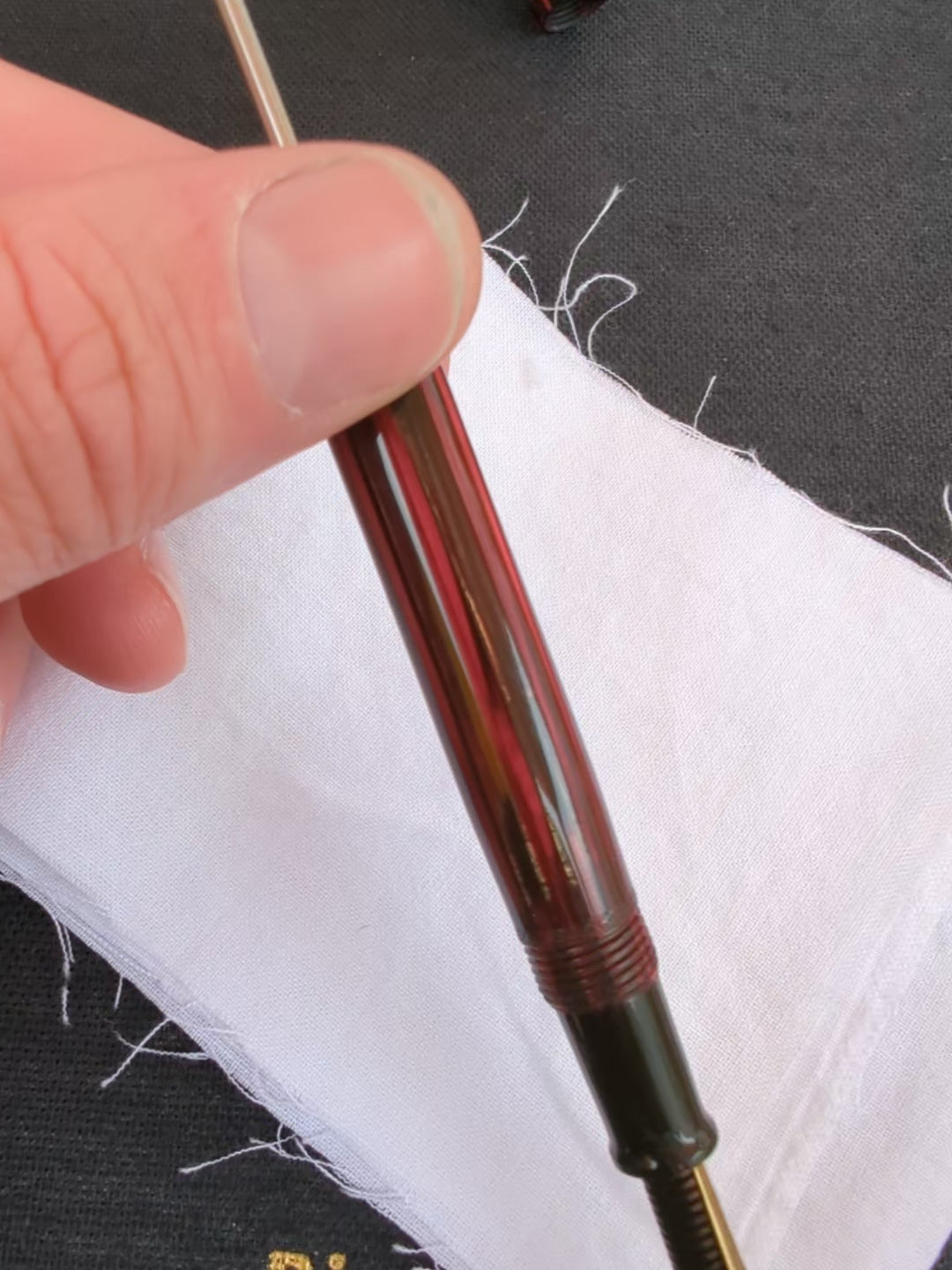 Unfortunately someone seems to have tried to separate the grip section from the barrel using pliers. There are marks just below the barrel threads and one large scar on the grip section. They are unsightly but not evident to my fingers when using the pen.