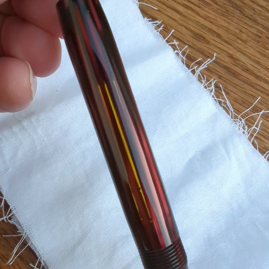 Sheaffer introduced carmine celluloid in their 1941 catalog. And that is the final catalog year of the Sheaffer Balance line with the Triumph line introduced in 1942. That makes carmine pens among the Balance pens produced for the shortest duration. That doesn't make this pen rare, but I think it is less common than some collectors realize.