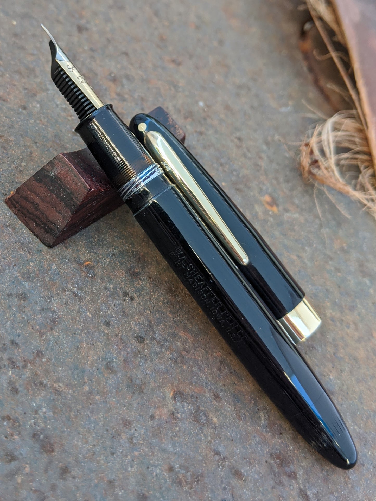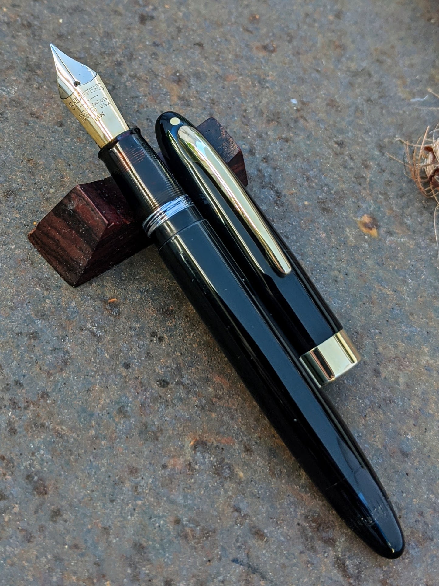 Black 1948 Sheaffer Statesman - Vacuum-Fil - Fine Golden Spade