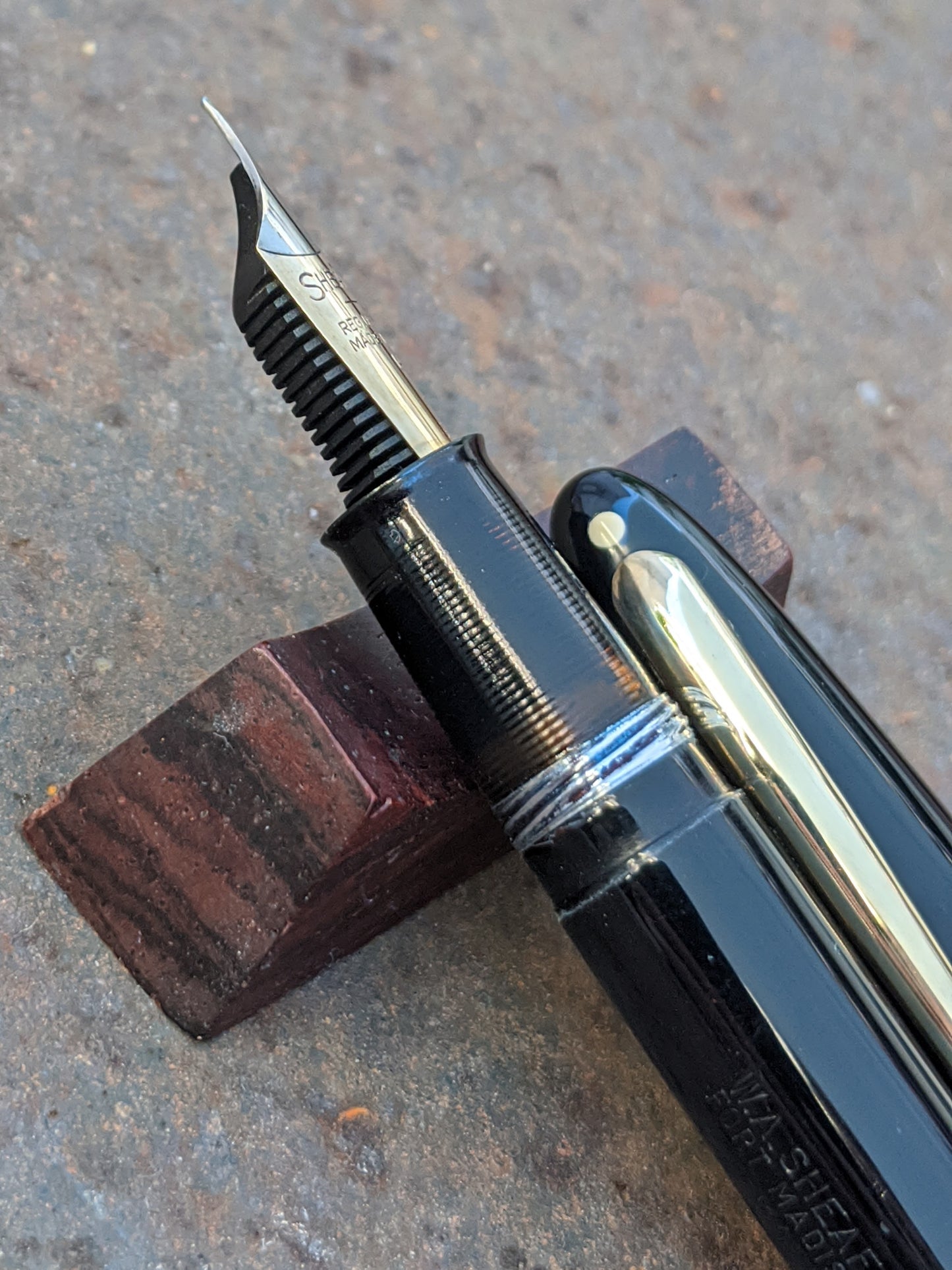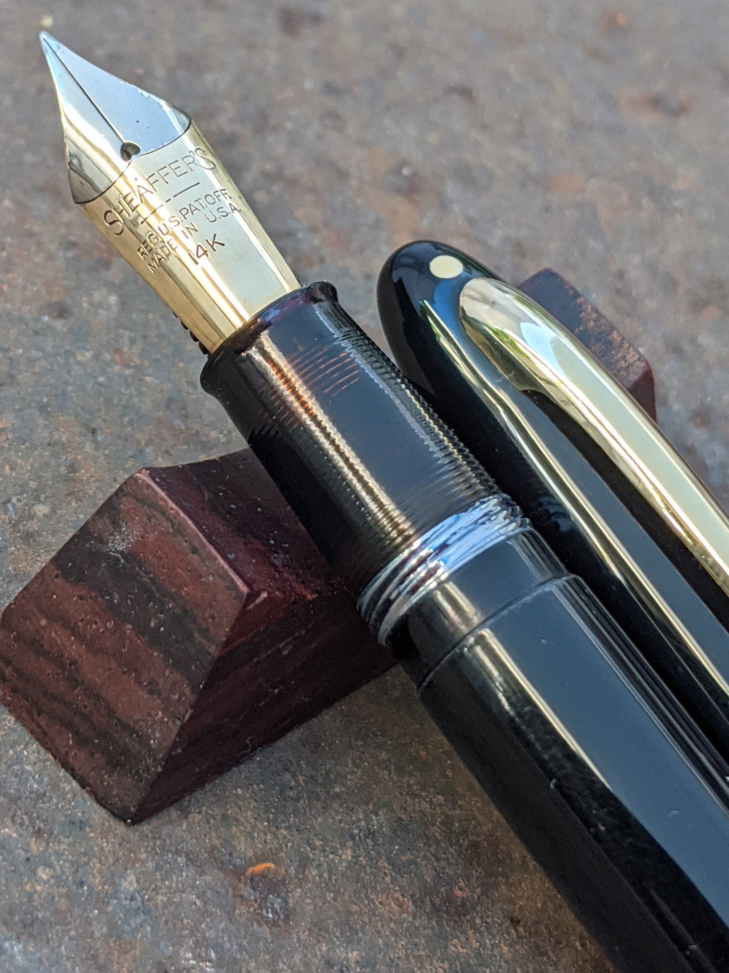 In 1948 Sheaffer brought back a nib based on the flagship Balance Premier, or Oversize (OS). I call it the Golden Spade. It truly is the same size nib as found on the vaunted Sheaffer Premier. In fact, I have found Premiers with Golden Spade replacement nibs. The only difference is the imprint. The Golden Spade is not stamped LIFETIME.