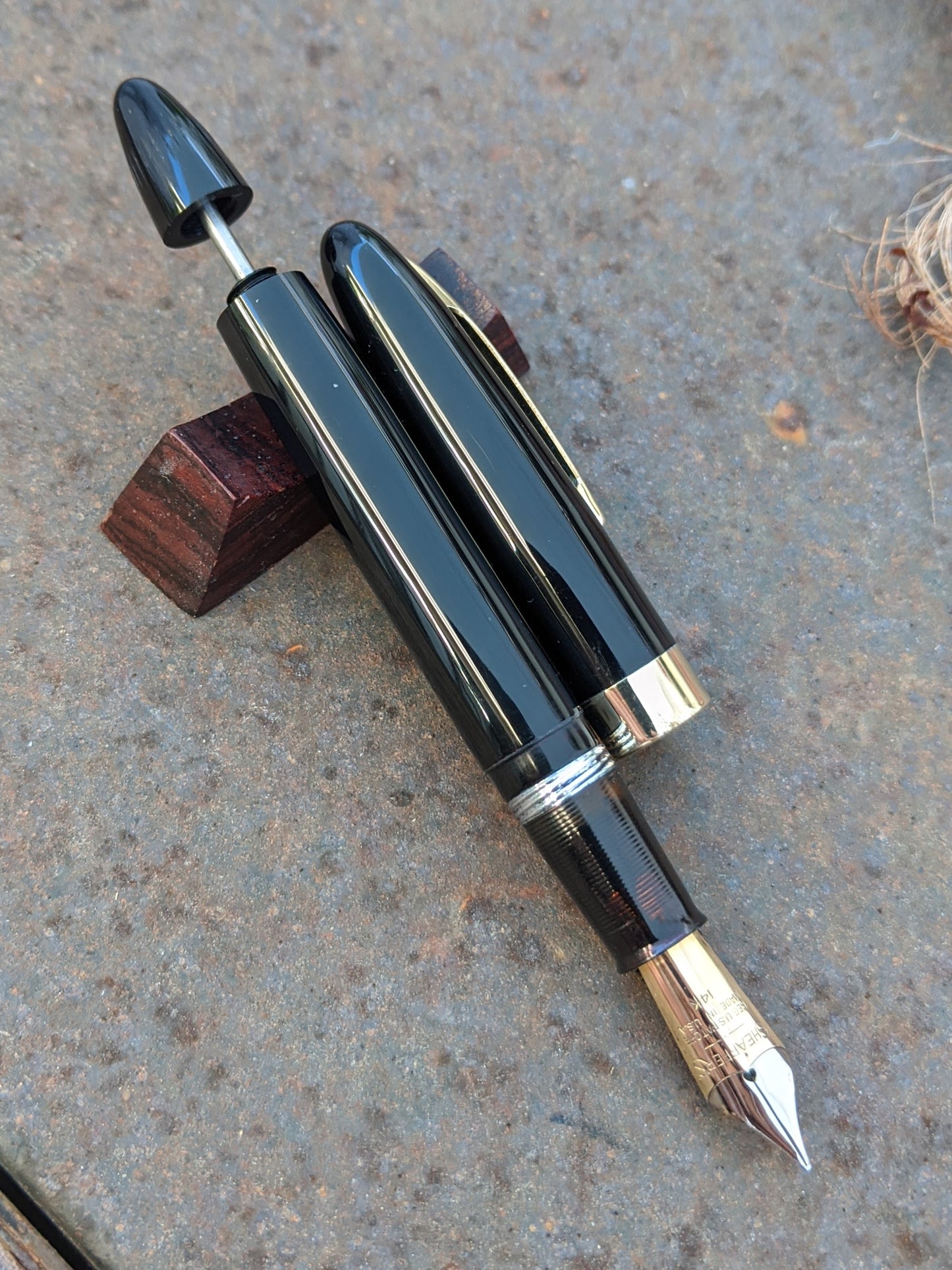 I love the way the Golden Spade looks on the Triumph Statesman. It is disproportionately large compared to the barrel. I think that is marvelous. This one writes a lovely, smooth fine line.